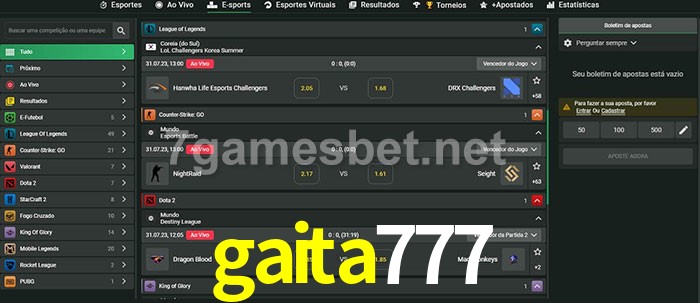 O gaita777 oferece uma grande seleção de opções de apostas em e-sports com probabilidades competitivas